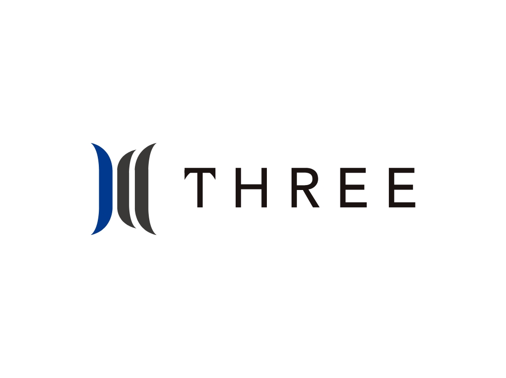 THREE様のロゴには、THREE の名前から 3 つのモチーフに落とし込みデザインしたロゴです。人と人、アイデアと感性が重なり、伝わり拡がって幸せを紡いで いくというビジョンが込められています。