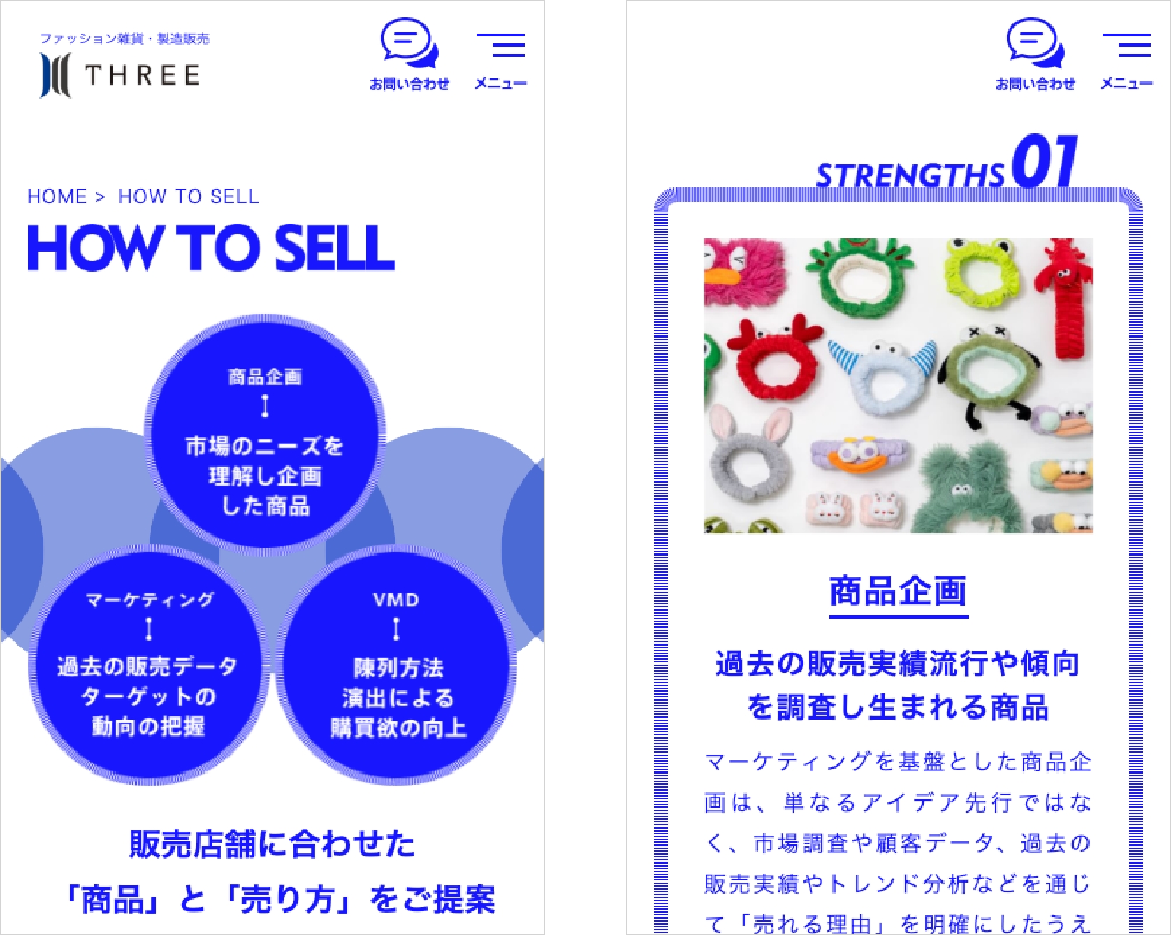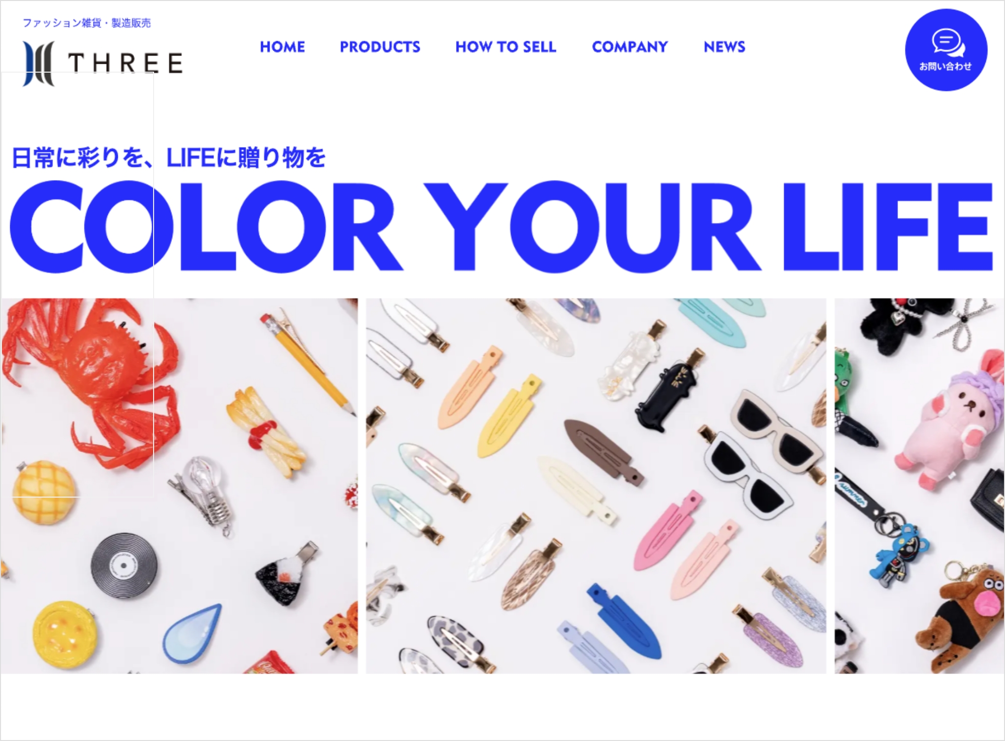 京都でファッション雑貨・コスメなどの商品企画・製造・販売をされているTHREE様のコーポレートサイトの制作をさせていただきました。商品の楽しさがより伝わりつつ、今後様々な展開をされることも想定して、柔軟性を持たしつつ、会社としての色を出すことができる構成でデザインさせていただきました。合わせて写真撮影・会社のロゴ制作も行わさせていただきました。
